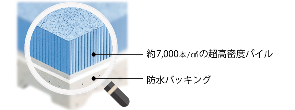 約7,000本/cm2の超高密度パイルで、汚れが奥まで入り込みません!
